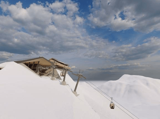 Sowohl die Talstation als auch die Bergstation fügen sich als elegante in das Landschaftsbild ein. Die Talstation, am Zürser See gelegen, bietet nun eine breite und schöne Zufahrt zur Bahn.